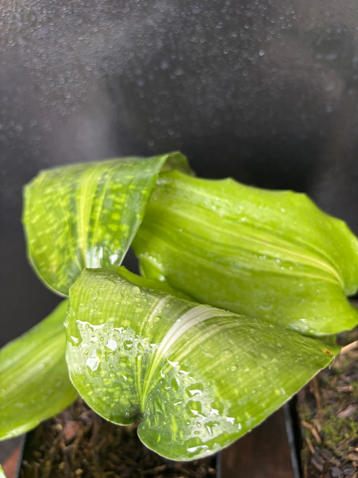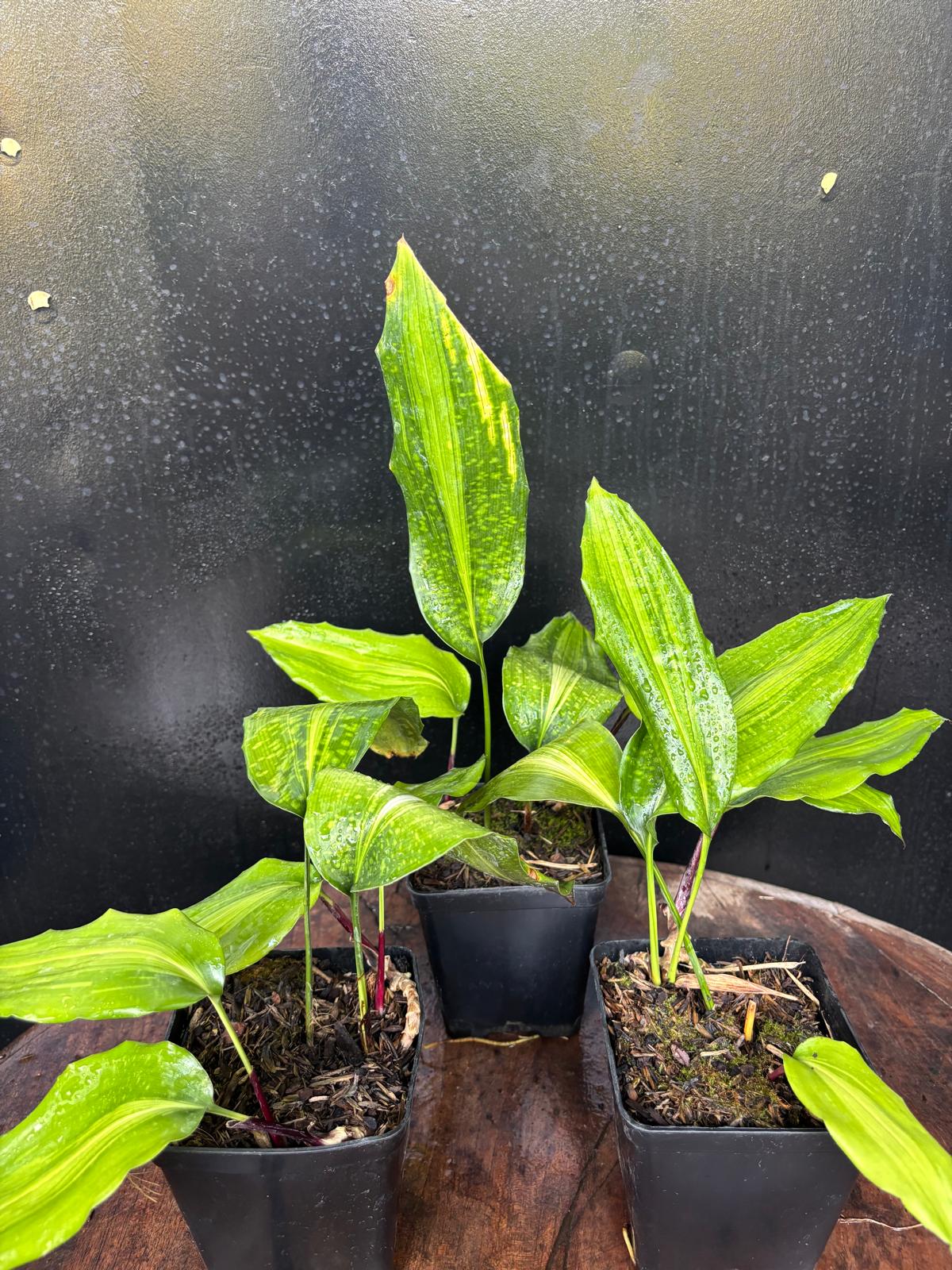 Aspidistra zongbayi is een lage, breedbladige Aspidistra uit China welke in Japan in diverse cultuurvormen wordt gekweekt. In onze collectie hebben we de vorm Aspidistra zongbayi Uan Fat Lady met in het blad een brede lichtgroene bandering rond de middennerf en een lichtgroen vlekpatroon over de donkergroene bladschijf. Groeien het beste in de schaduw op een humusrijke, vochthoudende bodem. Prijs is per plant.